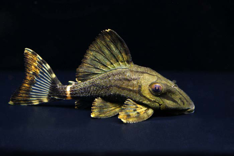 “スイカ模様の入門プレコ。野生下では流木やコケをかじってい為、飼育水槽には流木を入れてあげると餌にもなり隠れ家にもなるので入れてあげよう。”
