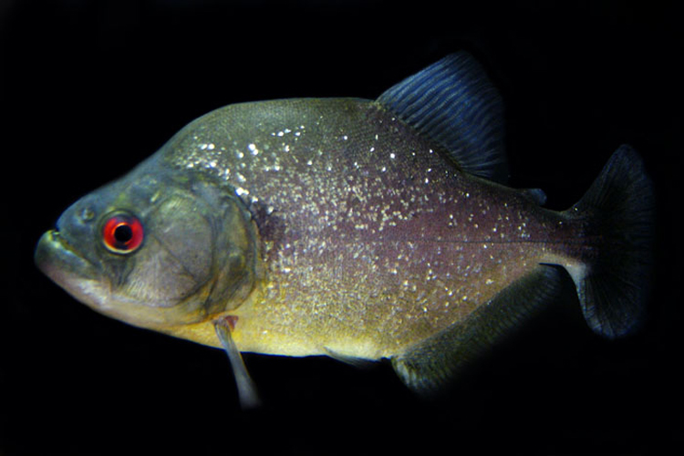 入荷数は少なく、一定の時期だけしか入荷しない。成長と共に体に入るラメが増し、血のような赤い目が特徴のとても美しいピラニア。ギラギラ系ピラニアとしてはもっとも人気がある産地の一つだ。性格はきつく他種同種ともに混泳は難しい。
