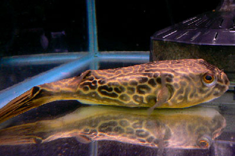 アフリカ(コンゴやタンガニーカ湖)に生息。最大で71cmを超える。世界最大の淡水フグ。遊泳性が強く、唐草模様と大きな尾びれが特徴の美しい種です。