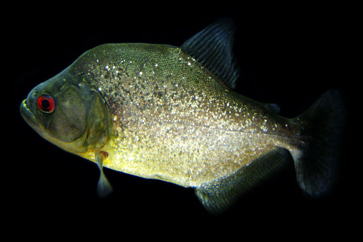 人気の高いアラグアイア川産 1年を通じ入荷量が少なく、一定の時期だけしか入荷しない。ピラニア全体の輸入量からすると入荷数は少ない。成長と共に体に入るギラギラとしたラメと血のような真っ赤な目が特徴で美しいピラニア。他の産地に比べ下あごのシャクレも強い。ダイヤモンド系ピラニアとしてはもっとも人気がある産地の一つだ。性格はきつく他種同種ともに混泳は難しいようだ。