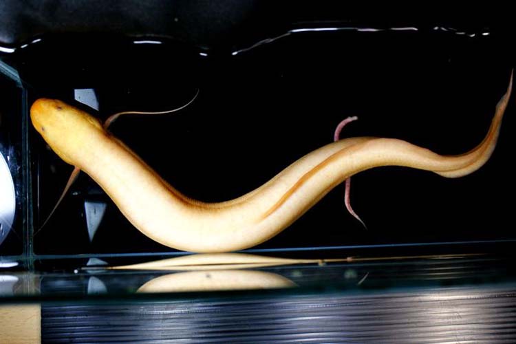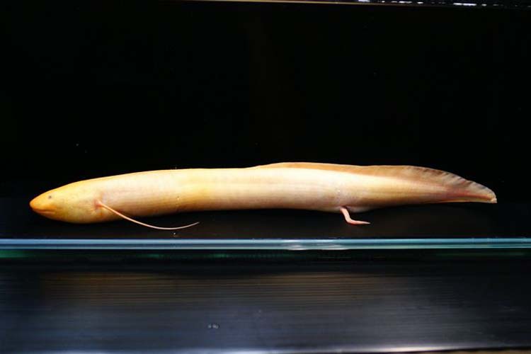 コンゴ、ザイールなどの中央アフリカに住むアフリカン肺魚。他の肺魚より細長い形をしているのが特徴。※写真の個体をお送りします。右後のヒレ先が丸くなっています。