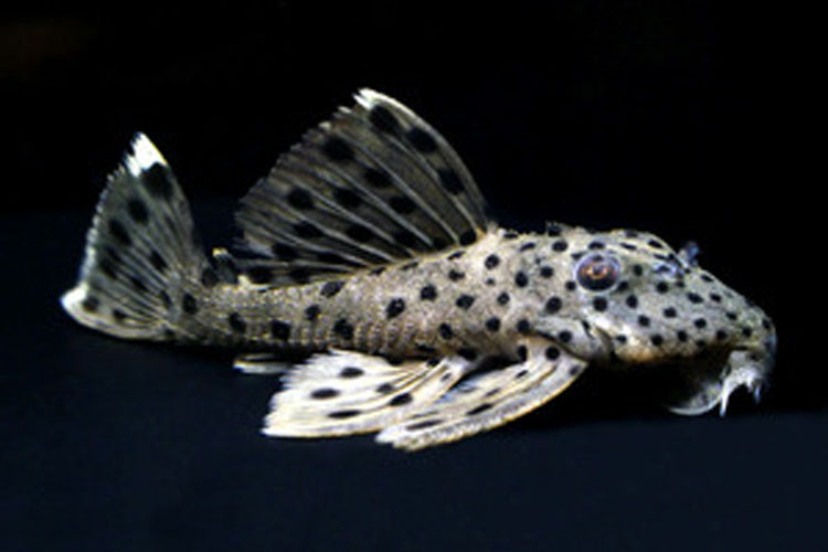 別名グレイトリム。灰褐色の地に黒いスポットが入り背ビレと尾ビレの上下端が白く染る。産地により変異が見られる。比較的飼いやすい種類。