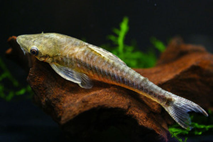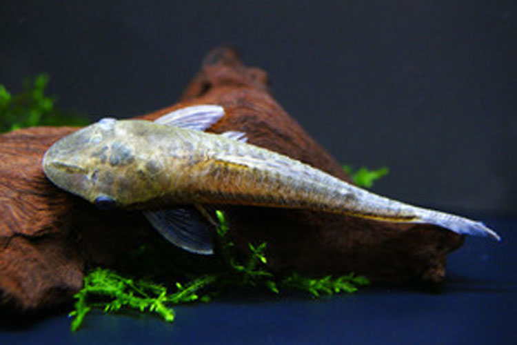 その名からわかるようにオトシンクルスの仲間の中ではおそらく最大種。10cmにもなると 物静かでかわいいイメージのオトシンも迫力がある。体色は茶褐色~暗灰色がベースで、そこにランダムで不鮮明な斑が入り、気分や環境で変化する。顔前部は扁平で、上向きに反るように迫り出しており非常に特徴的である。やや臆病な所があり、振動や動きに敏感で驚くと瞬発的に泳ぐ。種自体の体力はあるほうだが、水質の急変・悪化には注意したい。植物質の多い餌を与えると良い。
