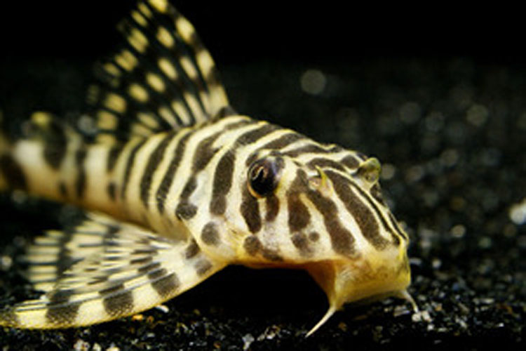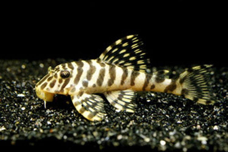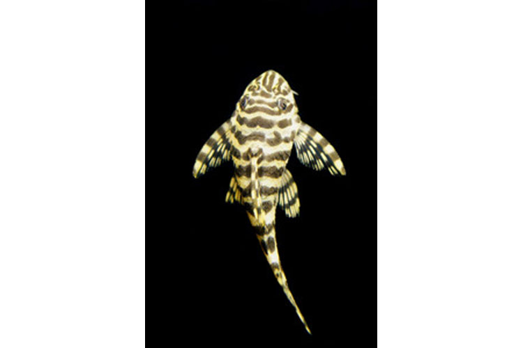 白に黒のストライプ模様のコントラストが大変美しい小型のプレコ。この模様は個体ごとに模様が異なる。性格も大人しいので小型水槽向け。