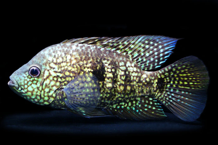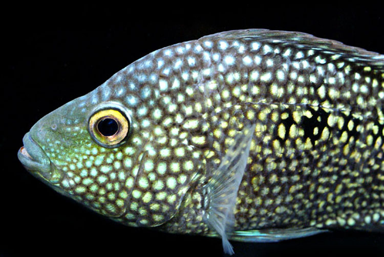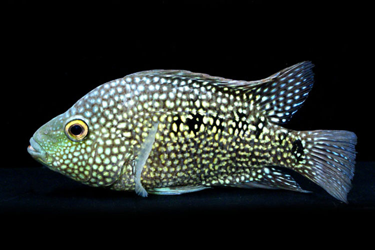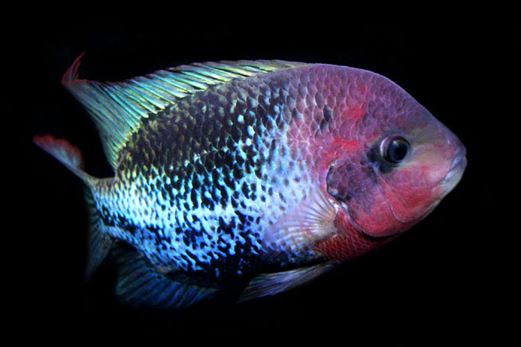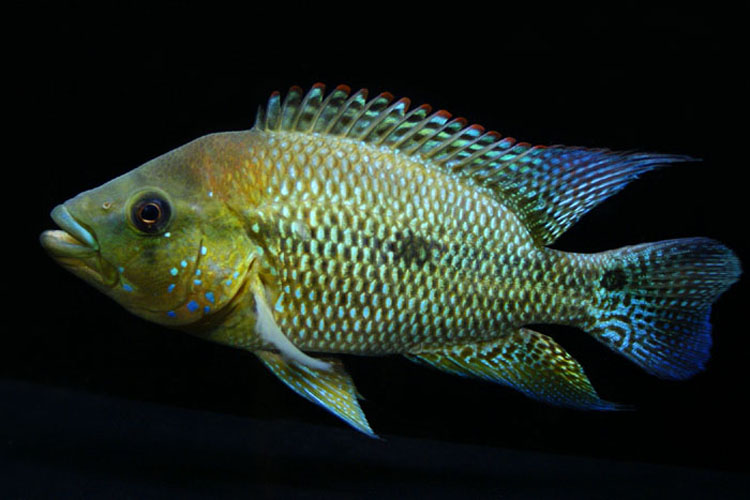 シクラソマ(中南米産シクリッド総称)シクラソマ類の中でも最大種の一つとして知られる大型種。最大80cmほどで水槽内でも60cm近くなる。全身にちりばめられたブルーのスポットや精悍な顔つきが人気。性格は荒々しく排他的。しかし単独でも十分に飼育者を満足させてくれるだろう。