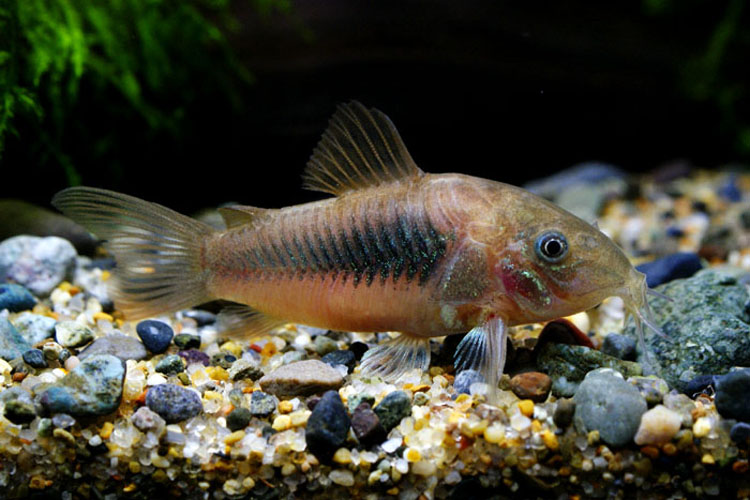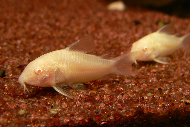コリドラスの中でも最も有名な種類の一種。アルビノ個体である通称白コリと比較され、赤コリと呼ばれる。