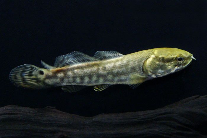 名だたる古代魚達の特徴を合わせ持つ北米の怪魚である。一見、「スネークヘッド」の様な風貌であるが、ポリプテルスのように上顎に鼻管を持ち、背ビレを波打たせて前後に泳ぐ事ができる。成熟したオスの尾ビレ基底部には目玉のような班が目立つように入るが、メスにはそれが無く、体色も茶褐色をしている。五大湖以南の北米大陸に生息し、近年入荷は減りつつある古代魚である。