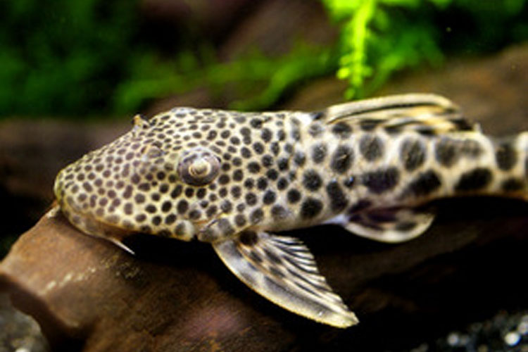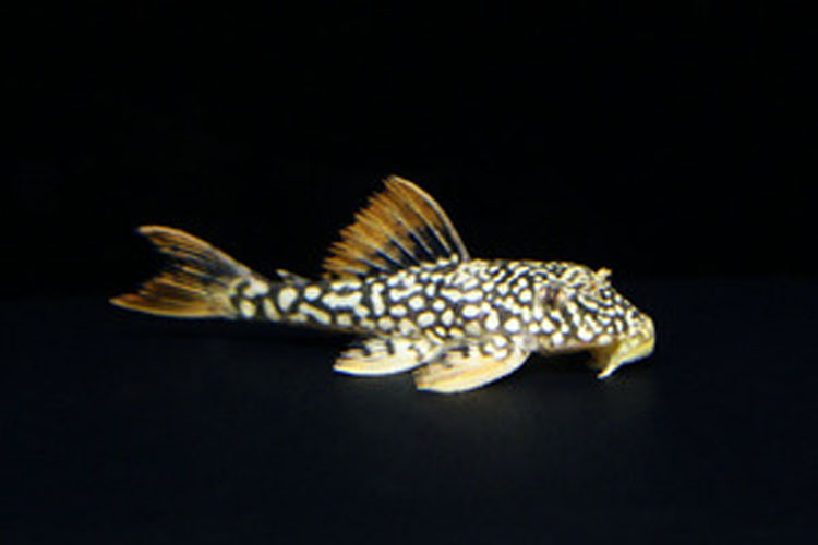 いかつい名前とは裏腹に、真っ黒な体色をベースにホワイトのスポットが全身にちりばめられ美しいプレコ。入荷量は少ないが、性格も物怖じしない性格で飼育は容易。