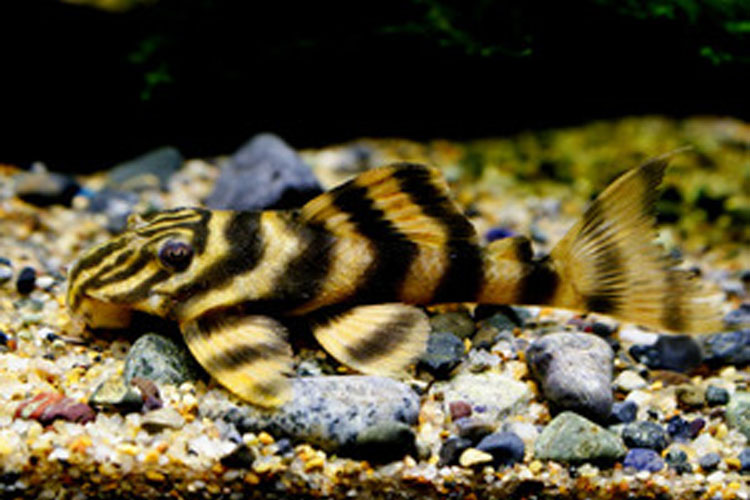 黒いボディに白~乳白色のラインが美しいプレコ。このグループは非常にバリエーションが多く、産地や模様の入り方で呼び名はまちまちである。一つとして同じパターンの無い柄を楽しめるのもこの種を飼育する醍醐味である。丈夫で飼育しやすい種である。